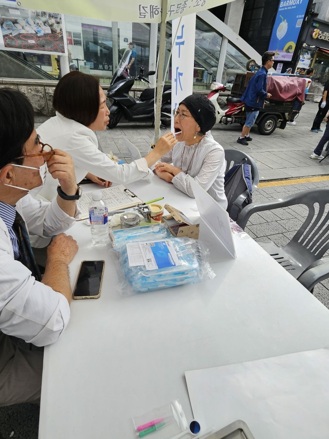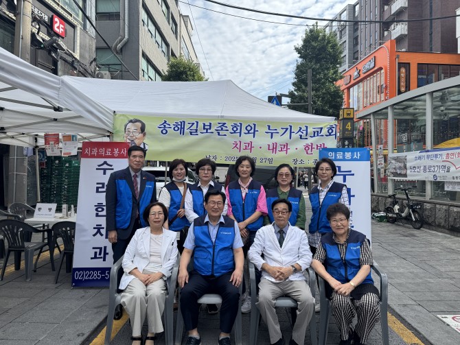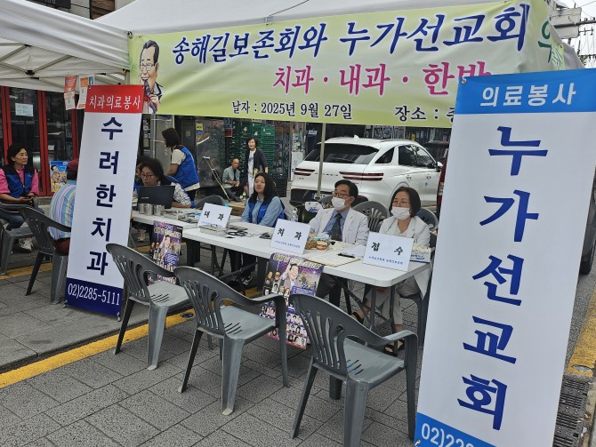 한편 누가선교회 대표회장 김성만 목사의 주관으로 김광열 원장 윤영환 원장 안관홍 원장 김동영 원장 등 많은 봉사자들이 참석해 의료봉사로 오시는 분들의 건강과 노래로 하루를 즐겁게 보냈다.