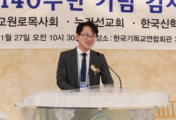 27일 서울 종로 한국기독교연합회관 3층 그레이스홀에서 ‘일어나라 빛을 발하라’(사 60:1)는 주제로 열린 이날 제1부 순서는 한기원 대표회장인 김성만 목사(누가선교회 대표회장, 한국신학연합회 대표회장)의 개회선언 및 환영사로 시작됐다.