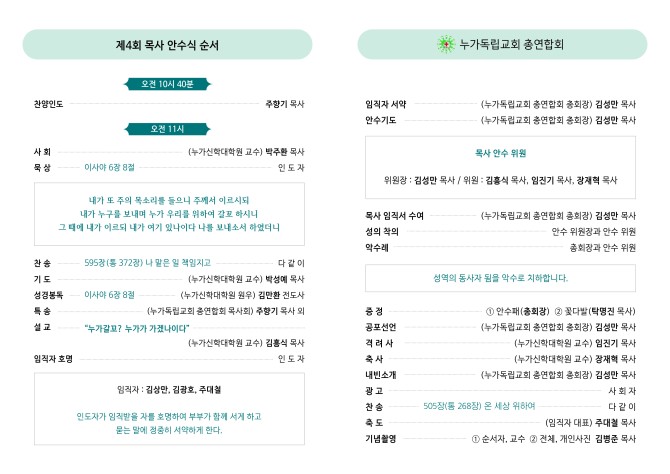 누가선교회 목사 안수식 성황리 거행 페이지 정보 작성자 관리자 댓글 0건 조회 124회 작성일 25-11-15 00:09 목록 본문 누가독립교회총연합회 제4회 목사 안수식 성황리 거행누가독립교회총연합회(총회장 김성만 목사)가 지난달 31일 누가선교연합교회서 제4회 목사 안수식을 하나님의 크신 은혜 가운데 거행했다.이날 누가독립교회총연합회는 누가신학대학원을 졸업한 김상만 목사, 김광호 목사, 주대철 목사 등 3명의 신임 목사를 배출했다. 댓글 0 댓글목록 등록된 댓글이 없습니다.